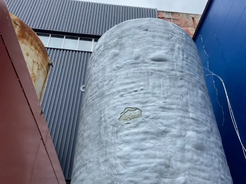 Решение: Удалить некачественное покрытие. Нагреть утепляемую поверхность с помощью нагревательных приборов или тепловой пушки. Произвести повторное напыление грунтовочного слоя толщиной 2 — 3 мм соблюдая температурный режим напыления, согласно ТИ производителя.